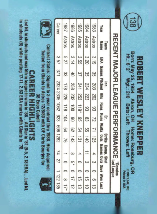 1988 Donruss #138c Bob Knepper