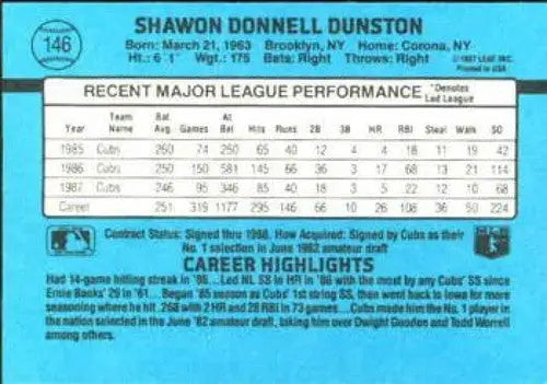 1988 Donruss #146 Shawon Dunston EX Chicago Cubs Baseball Card