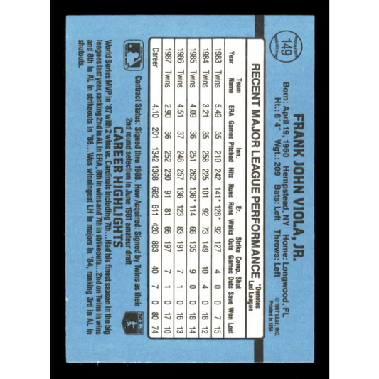 1988 Donruss #149 Frank Viola EX Minnesota Twins Baseball Card