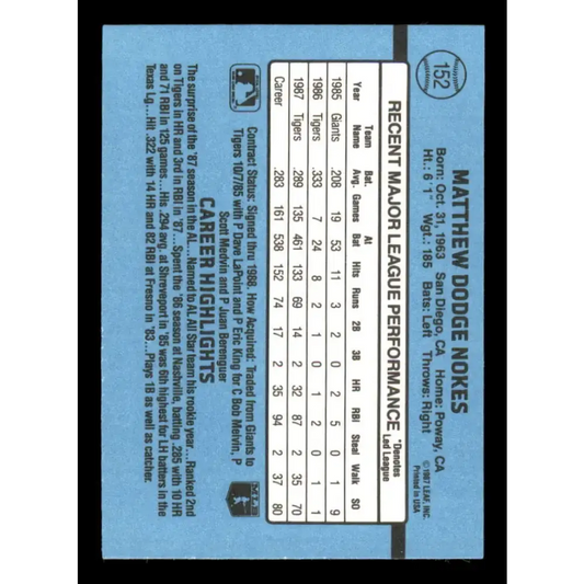 1988 Donruss #152 Matt Nokes EX RC Rookie Detroit Tigers Baseball Card