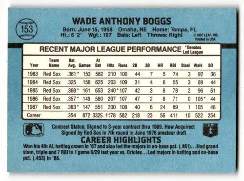 1988 Donruss #153 Wade Boggs Boston Red Sox Baseball Cards EX/NM ID:64461