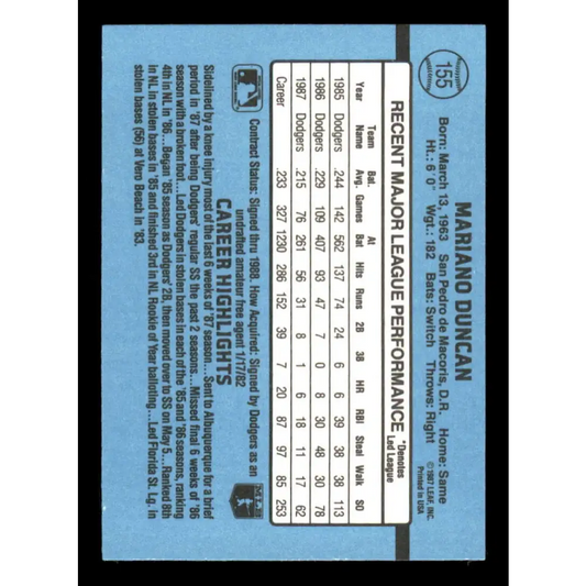 1988 Donruss #155 Mariano Duncan EX Los Angeles Dodgers Baseball Card