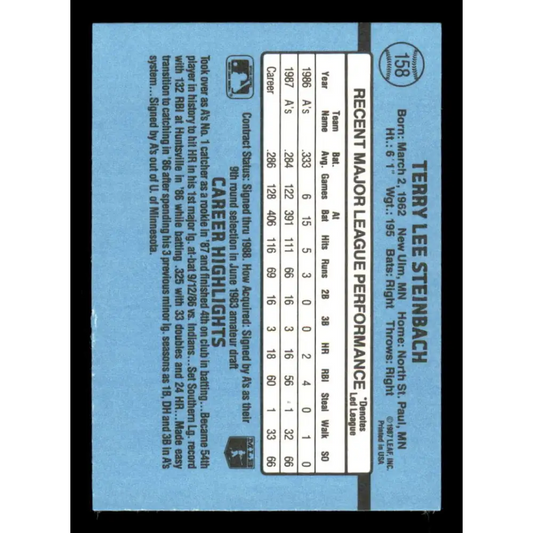 1988 Donruss #158 Terry Steinbach EX Oakland Athletics Baseball Card