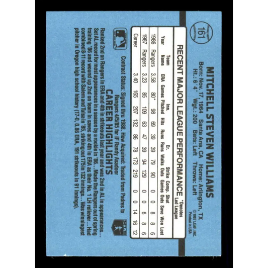 1988 Donruss #161 Mitch Williams EX Texas Rangers Baseball Card