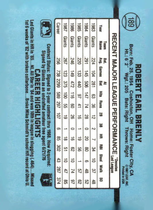 1988 Donruss #189 Bob Brenly EX San Francisco Giants Baseball Card