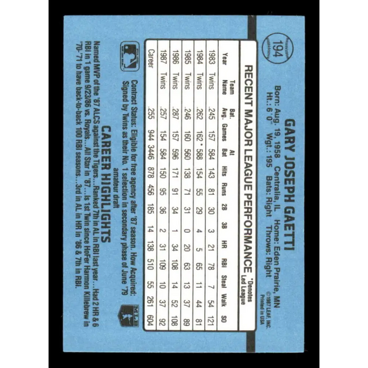 1988 Donruss #194 Gary Gaetti EX Minnesota Twins Baseball Card