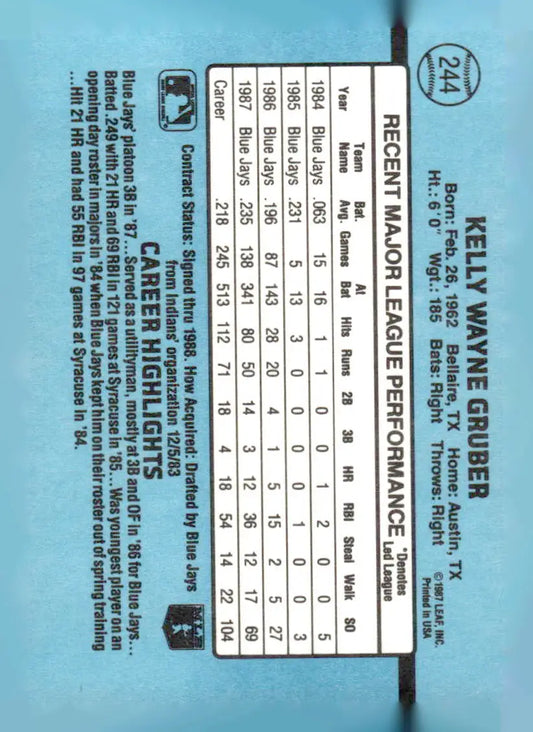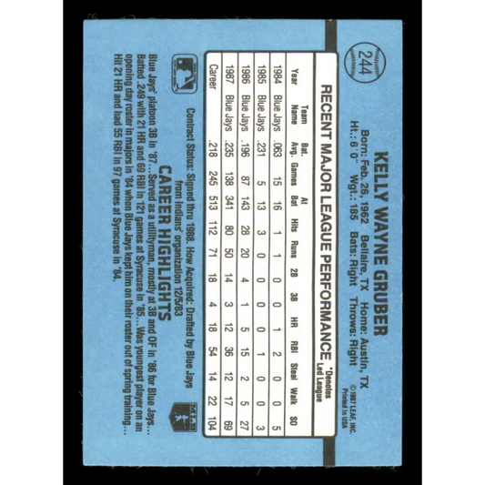 1988 Donruss #244 Kelly Gruber EX Toronto Blue Jays Baseball Card