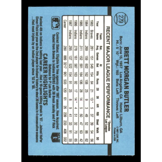 1988 Donruss #279 Brett Butler EX Cleveland Indians Baseball Card