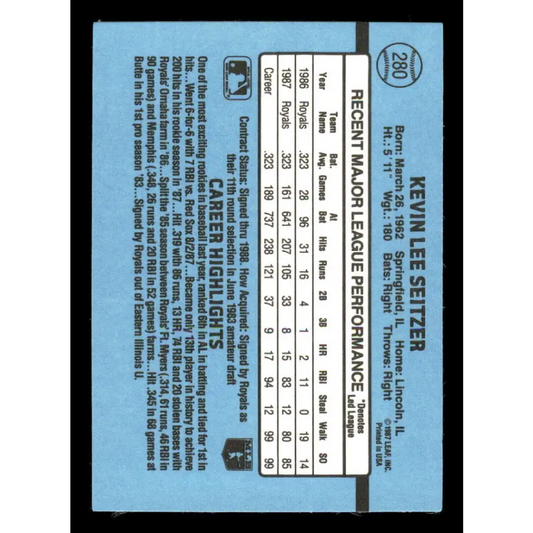 1988 Donruss #280 Kevin Seitzer EX Kansas City Royals Baseball Card