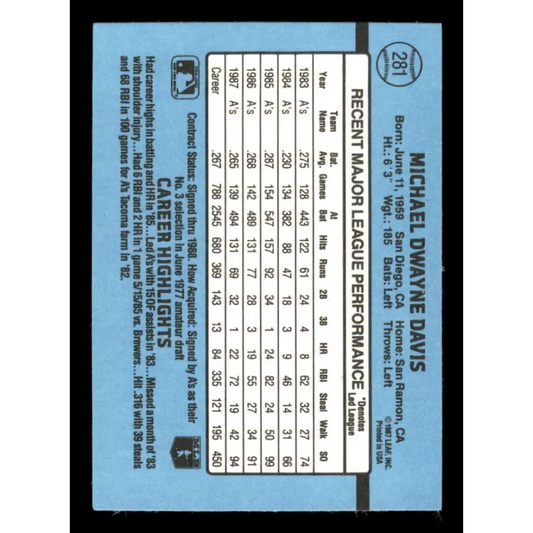 1988 Donruss #281 Mike Davis EX Oakland Athletics Baseball Card