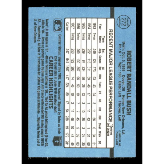 1988 Donruss #272 Randy Bush EX Minnesota Twins Baseball Card