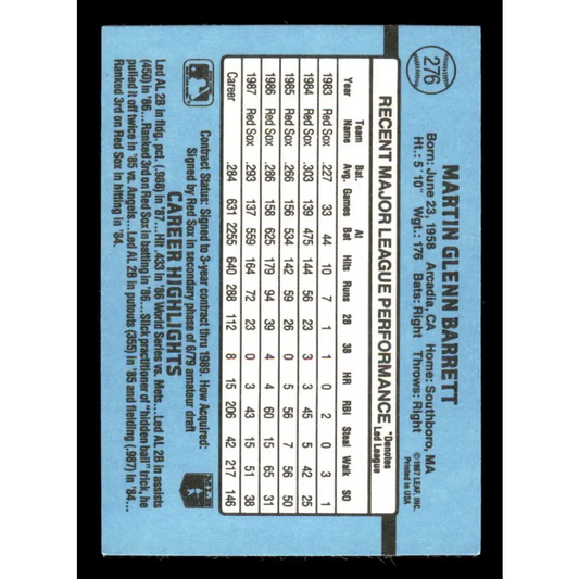 1988 Donruss #276 Marty Barrett EX Boston Red Sox Baseball Card