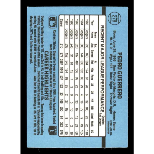 1988 Donruss #278 Pedro Guerrero EX Los Angeles Dodgers Baseball Card