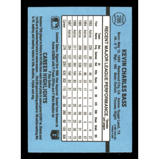 1988 Donruss #286 Kevin Bass Houston Astros Baseball Cards EX/NM ID:55375