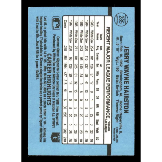 1988 Donruss #285 Jerry Hairston EX Chicago White Sox Baseball Card