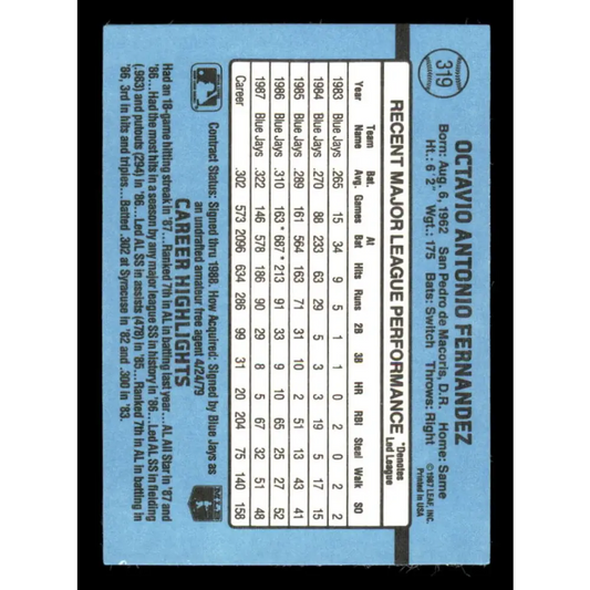1988 Donruss #319 Tony Fernandez EX Toronto Blue Jays Baseball Card