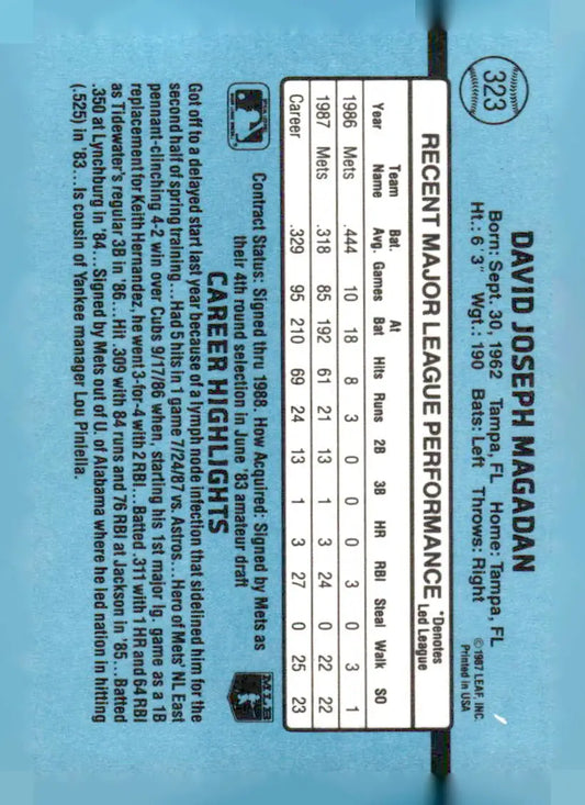 1988 Donruss #323 Dave Magadan EX New York Mets Baseball Card