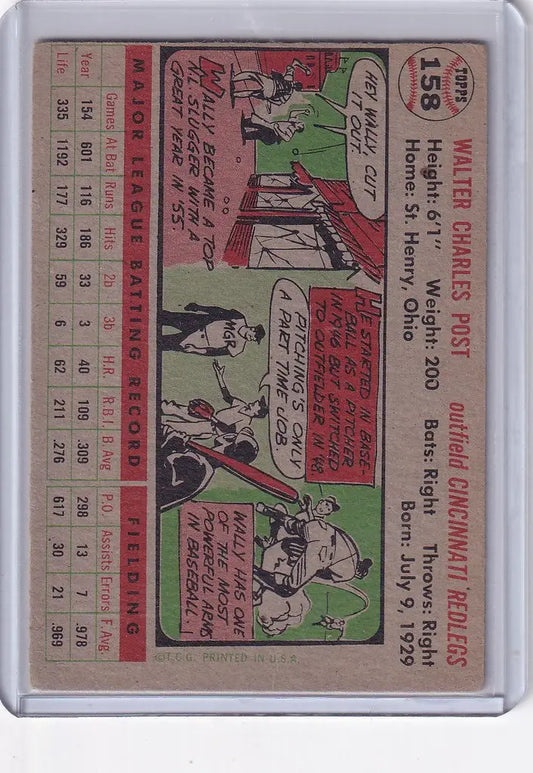 1956 Topps #158 Wally Post Cincinnati Redlegs