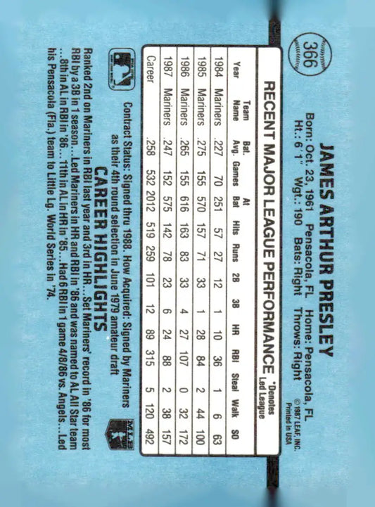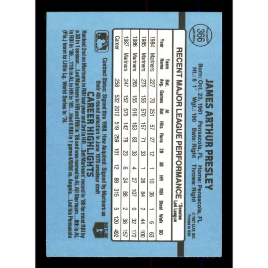 1988 Donruss #366 Jim Presley EX Seattle Mariners Baseball Card