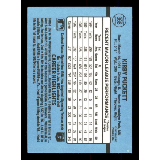 1988 Donruss #368 Kirby Puckett EX Minnesota Twins Baseball Card