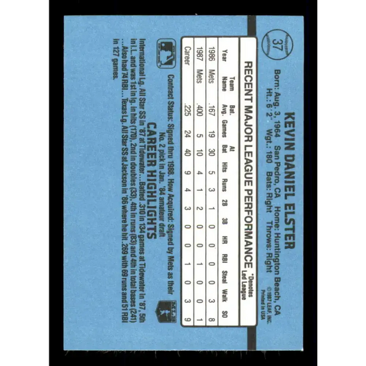 1988 Donruss #37 Kevin Elster EX New York Mets Baseball Card