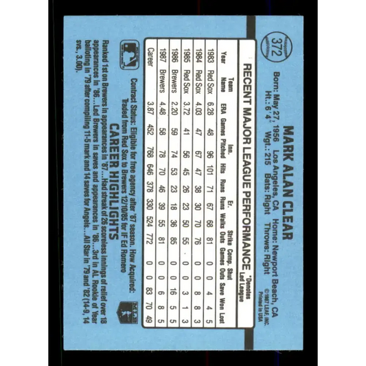 1988 Donruss #372 Mark Clear EX Milwaukee Brewers Baseball Card