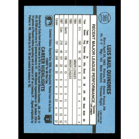1988 Donruss #365 Luis Quinones EX Chicago Cubs Baseball Card
