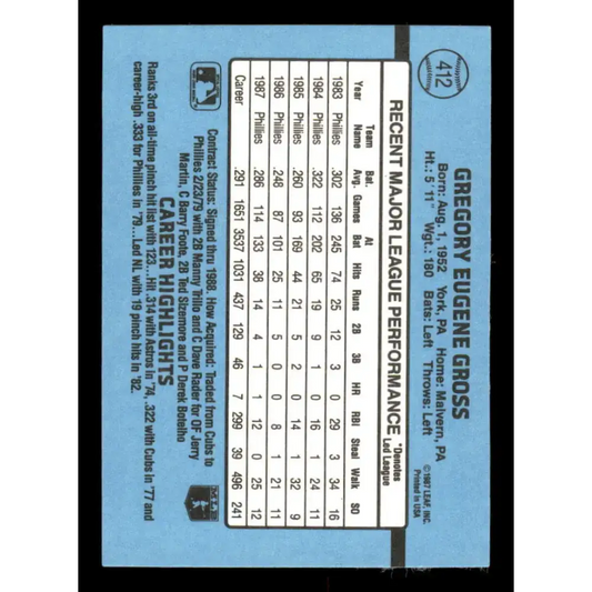 1988 Donruss #412 Greg Gross EX Philadelphia Phillies Baseball Card