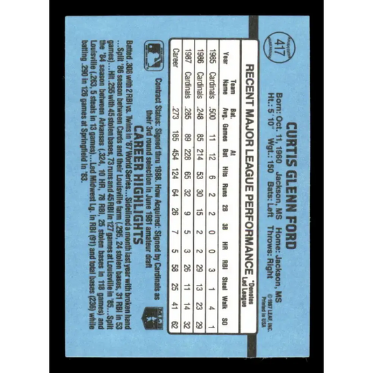 1988 Donruss #417 Curt Ford EX St. Louis Cardinals Baseball Card
