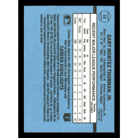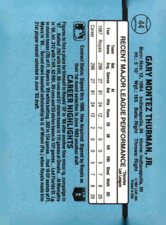 1988 Donruss #44 Gary Thurman EX Kansas City Royals Baseball Card