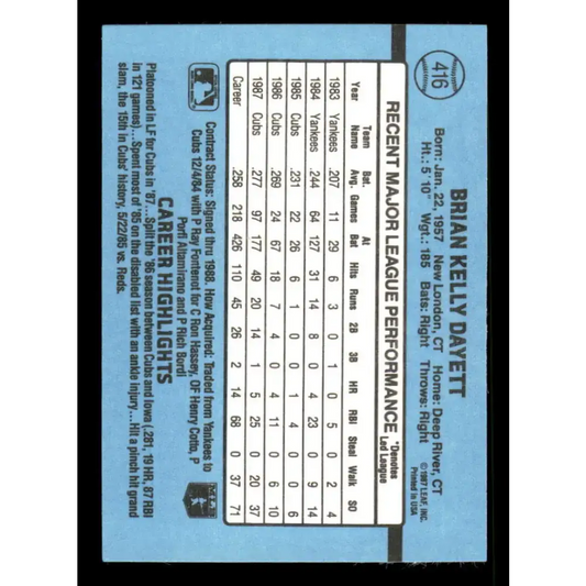 1988 Donruss #416 Brian Dayett EX Chicago Cubs Baseball Card