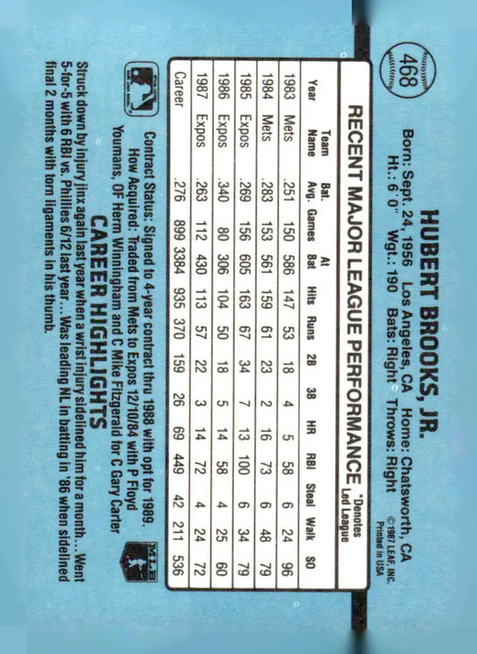 1988 Donruss #468 Hubie Brooks NM Near Mint Expos ID:39047