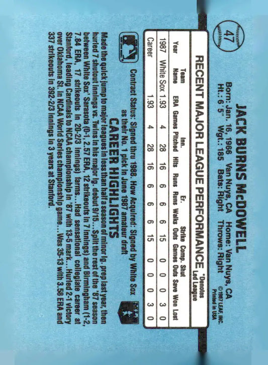 1988 Donruss #47c Jack McDowell