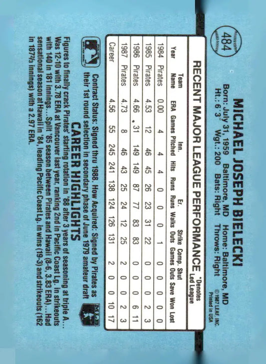 1988 Donruss #484b Mike Bielecki