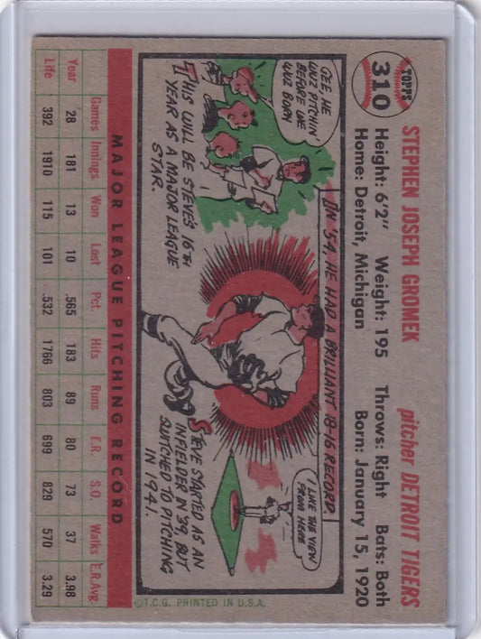 1956 Topps #310 Steve Gromek - Detroit Tigers