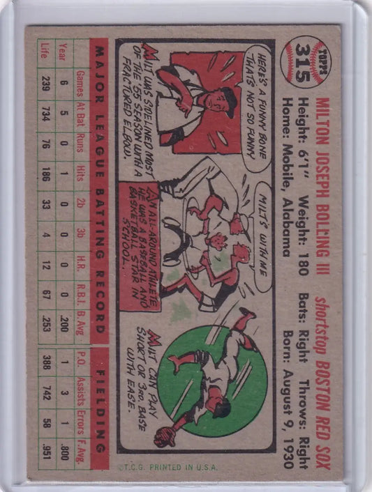 1956 Topps #315 Milt Bolling - Boston Red Sox