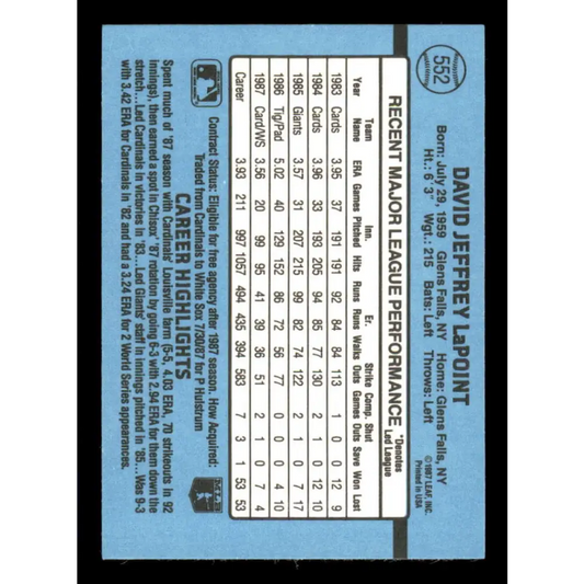 1988 Donruss #552 Dave LaPoint NM Near Mint White Sox