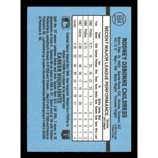 1988 Donruss #554 Rocky Childress EX RC Rookie Houston Astros Baseball Card