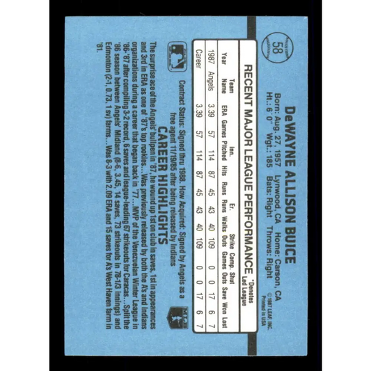 1988 Donruss #58 De Wayne Buice EX RC Rookie California Angels Baseball Card