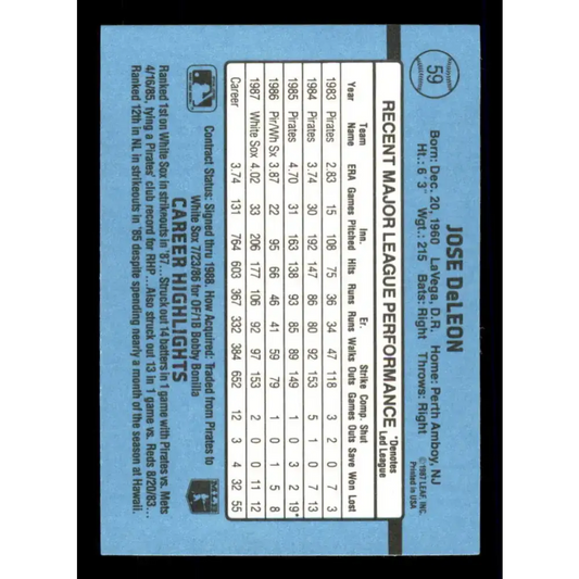 1988 Donruss #59 Jose DeLeon EX Chicago White Sox Baseball Card