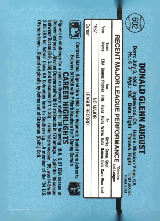 1988 Donruss #6 Ron Darling DK EX New York Mets Baseball Card