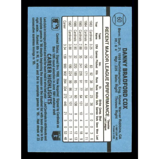 1988 Donruss #60 Danny Cox EX St. Louis Cardinals Baseball Card
