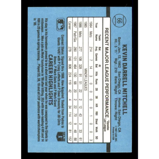 1988 Donruss #66 Kevin Mitchell EX San Francisco Giants Baseball Card