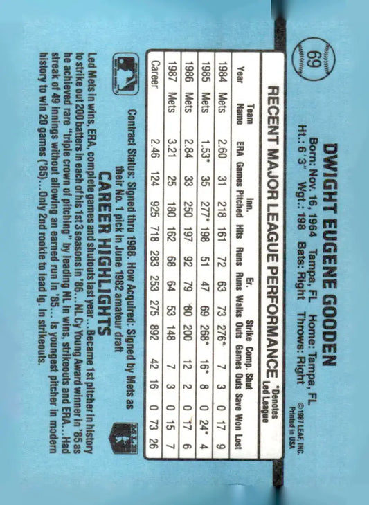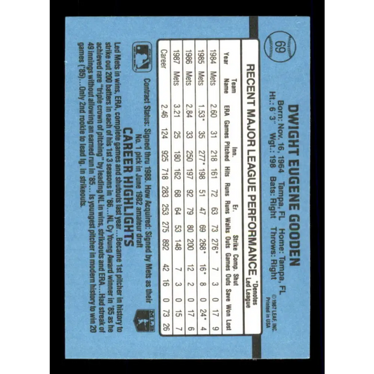 1988 Donruss #69 Dwight Gooden EX New York Mets Baseball Card