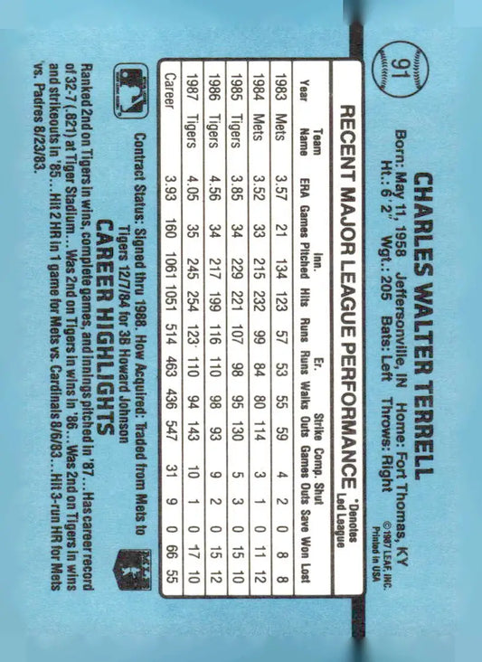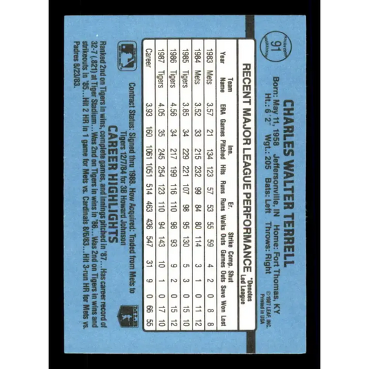 1988 Donruss #91 Walt Terrell EX Detroit Tigers Baseball Card