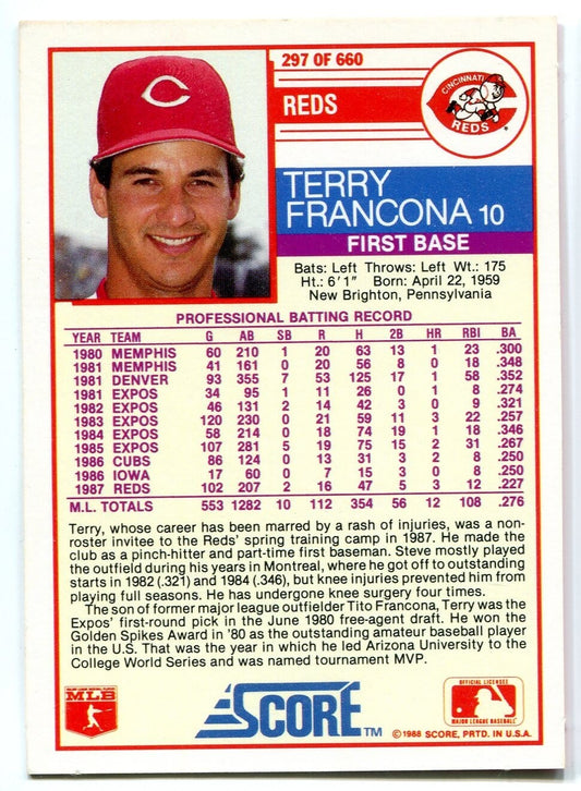 1988 Score Baseball Card Terry Francona Name Spelling Error Card #297 Franconia
