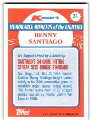 1988 Topps Kmart Memorable Moments #24 Benny Santiago San Diego Padr ID:63210