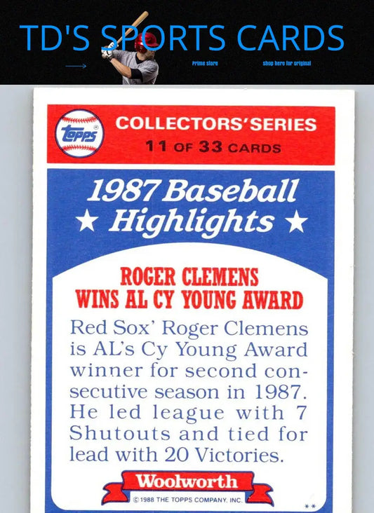 1988 Topps Woolworth Baseball Highlights #11 Roger Clemens