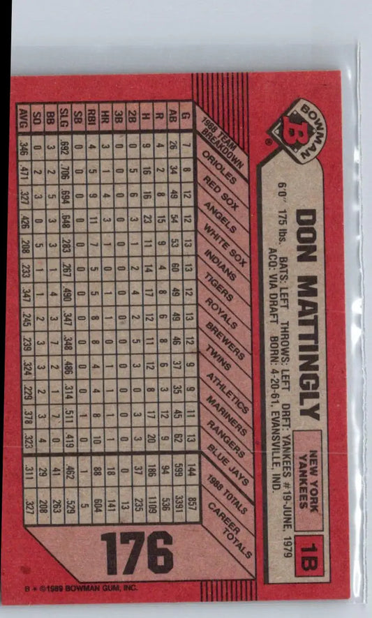 1989 Bowman #176 Don Mattingly NM-MT New York Yankees Baseball Card