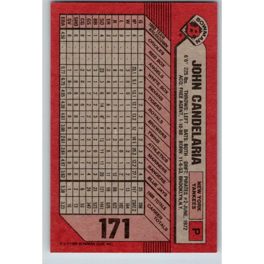 1989 Bowman #171 John Candelaria NM-MT New York Yankees Baseball Card